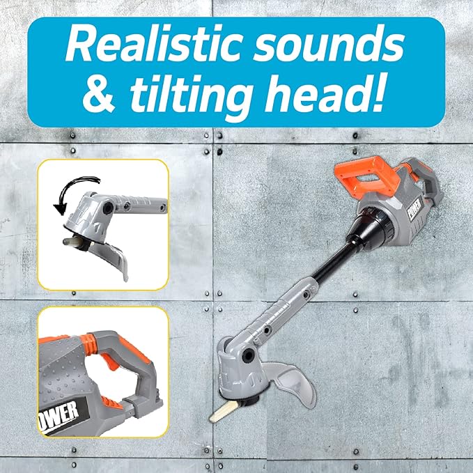 • Realistic Design: Equipped With A Pretend Plastic Blade That Really Rotates When You Pull The Trigger, This Life-Like Weed Whacker Is Perfect For Hours Of Fun! The Tilting Head And Expanding Arm Gives Little Landscapers The Real Experience.