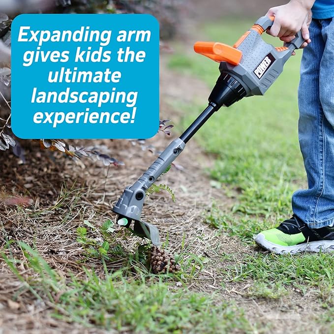 - Realistic Design: Equipped With A Pretend Plastic Blade That Really Rotates When You Pull The Trigger, This Life-Like Weed Whacker Is Perfect For Hours Of Fun! The Tilting Head And Expanding Arm Gives Little Landscapers The Real Experience.