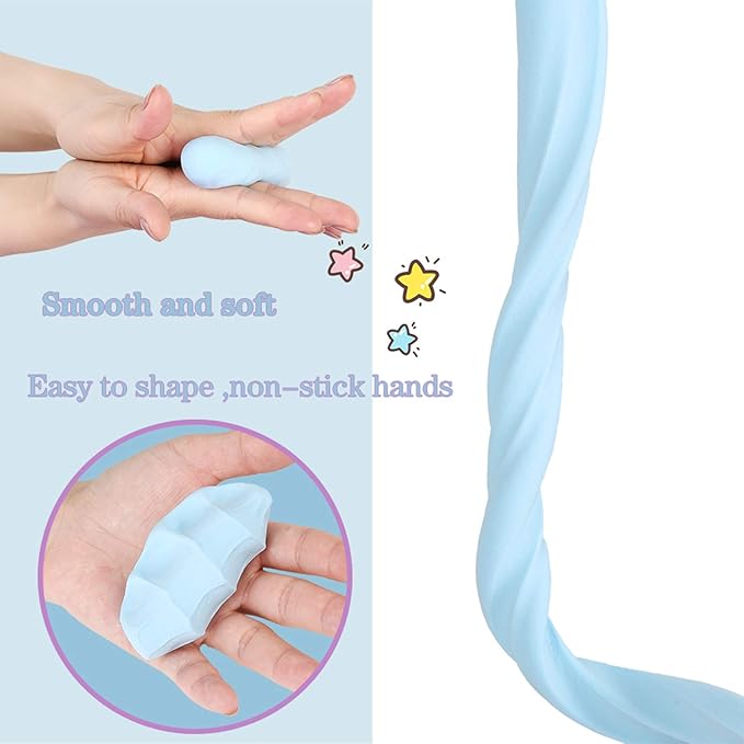 - 24PACKS(24colors): Too many or too few colors are not conducive to children's color recognition,the 24 colors we choose just meet the needs;Xiosag modeling clay for kids , the texture is soft and non-sticky, will not fade after repeated kneading, easy to shape , natural air drying does not crack. It is made of natural safety material,natural and nontoxic.