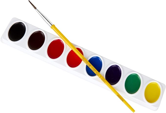 - CRAYOLA WASHABLE WATERCOLORS: Contains 1 Paintbrush and 8 Scented Watercolor Paints, featuring Root Beer, Lemon, Blueberry, Marshmallow, Grape, Cherry, Green Apple, and Orange.