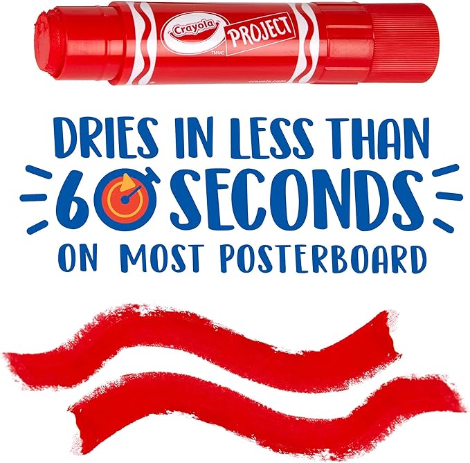 - QUICK DRY PAINT: These convenient Crayola paints require no added water and dry in 60 seconds or less on most poster board.