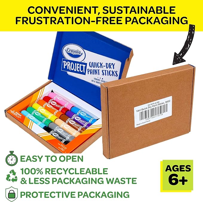 - CRAYOLA KIDS PAINTS: This less mess kid’s paint set includes 12 Paint Sticks in assorted colors.