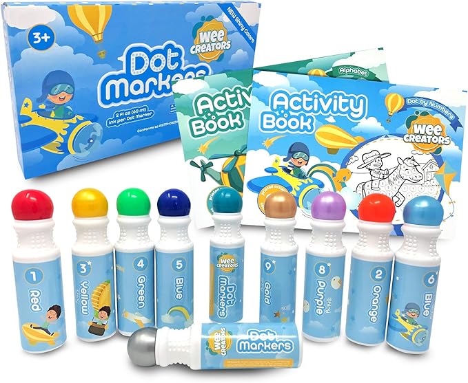 Washable Dot Markers for Kids with 2 Educational Activity Books | 10 Color Set (Boys)