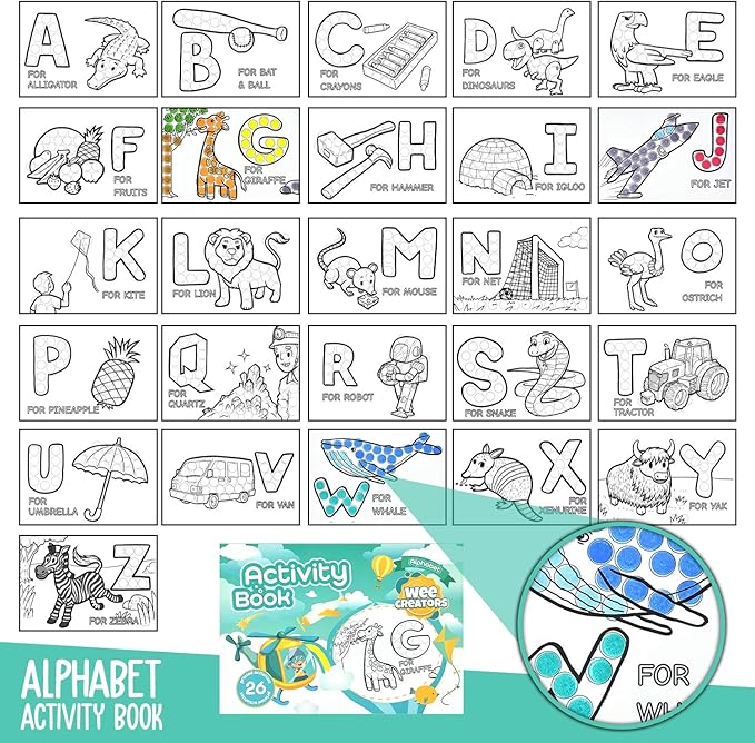 - - FUN ACTIVITY BOOKS: These activity books are seriously fun! Kids absolutely love them.... and parents too! Educate your children with these beautiful "Dot by Numbers" and "Alphabet" activity books.