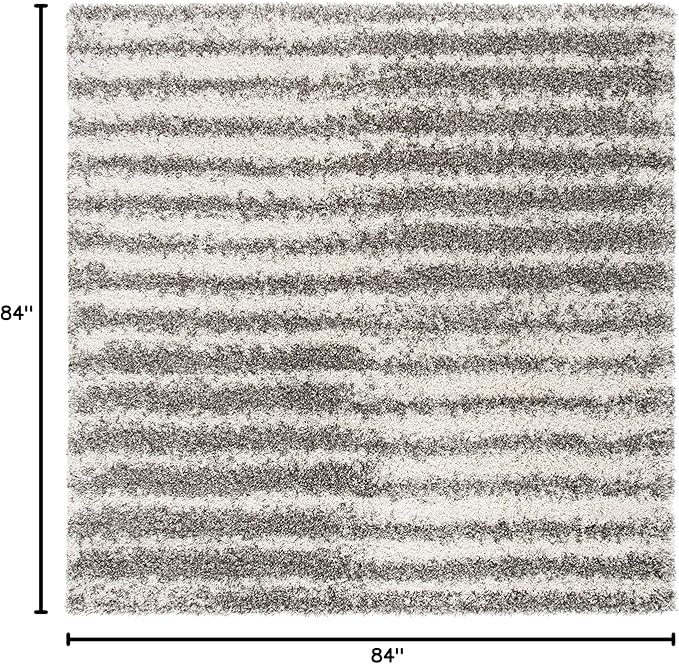 SAFAVIEH Hudson Shag Collection 7' Square Grey/Ivory SGH298F Modern Abstract Non-Shedding Living Room Bedroom Dining Room Entryway Plush 2-inch Thick Area Rug