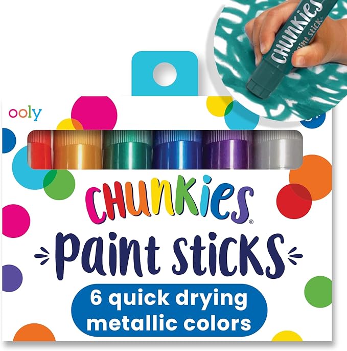 Ooly Chunkies 6 Metallic Paint Sticks For Kids, Tempera Paint Sticks Metallic Colors Set, No Mess Quick Drying Art Supplies for Toddlers and Kids
