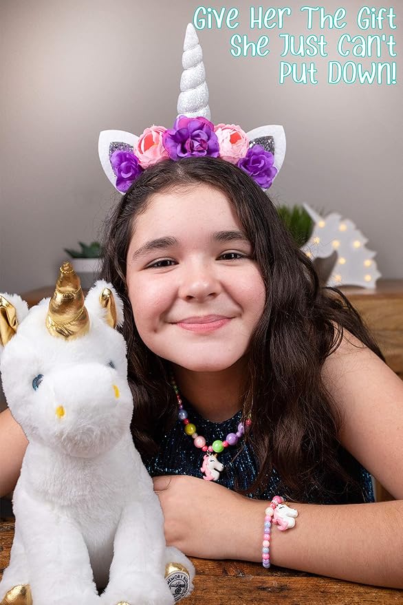 The Memory Building Company Kids Toys - Large Unicorn Surprise Box for Girls and Boys w/Unicorn Plush, Coloring Book and Markers, Jewelry and Horn Headband - Awesome Gift for Girls Age 6 & Up