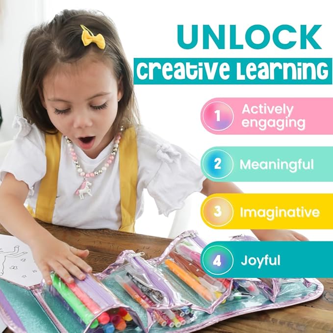 Amitié Lane Silly Scented Markers For Kids. Arts & Crafts Unicorn Gifts for Girls 6-8. Fun Kids Toys For Girls that includes Unicorn Markers, Crayons, Stickers and Carrying Case.