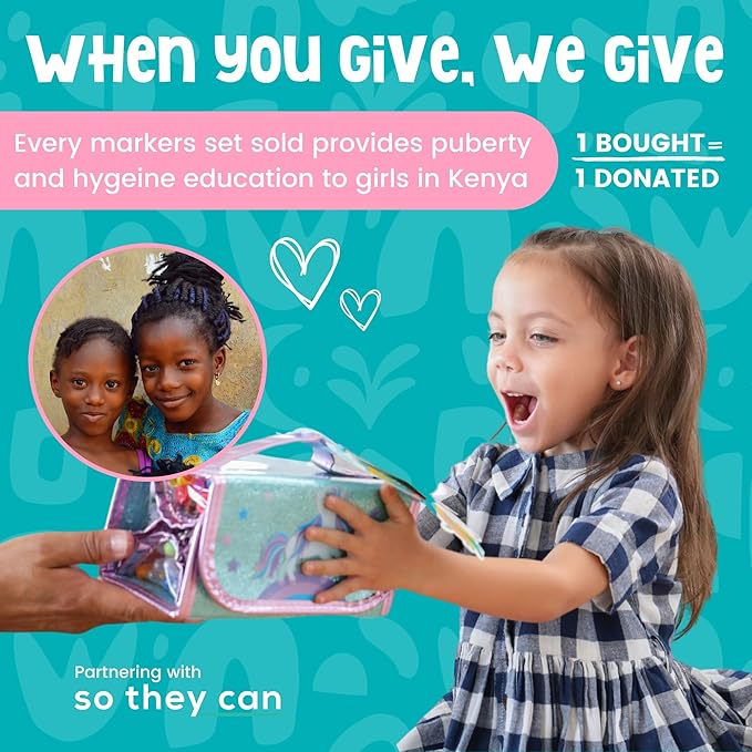 - Bonus Gifts: As an added bonus to this kids markers set, you will receive four sheets of scented stickers, featuring our very own Itsy Unicorn . Just scratch and sniff the yummy smells for that added fun! Our artist has also designed 7 Itsy Unicorn downloadable coloring sheets for you to print, so your little girl can color and design Itsy anyway she likes!