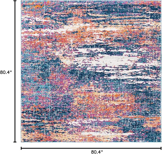 SAFAVIEH Evoke Collection Area Rug - 6'7" Square, Navy & Orange, Modern Abstract Design, Non-Shedding & Easy Care, Ideal for High Traffic Areas in Living Room, Bedroom (EVK272N)