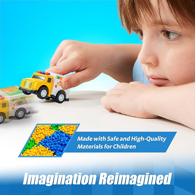 - REAL FUNCTION. Our Push-n-Go Pull Back Assorted Vehicles Toy Set for Toddlers & Kids can withstand rough use and bumps on the wall! There are no sharp edges or corners that can hurt your child. Bright and colorful. Friction powered, no battery needed. Just pull it back and let it go forward naturally, the smooth wheels can keep the car running for a long time.