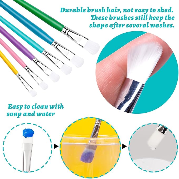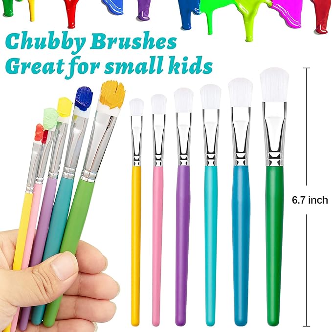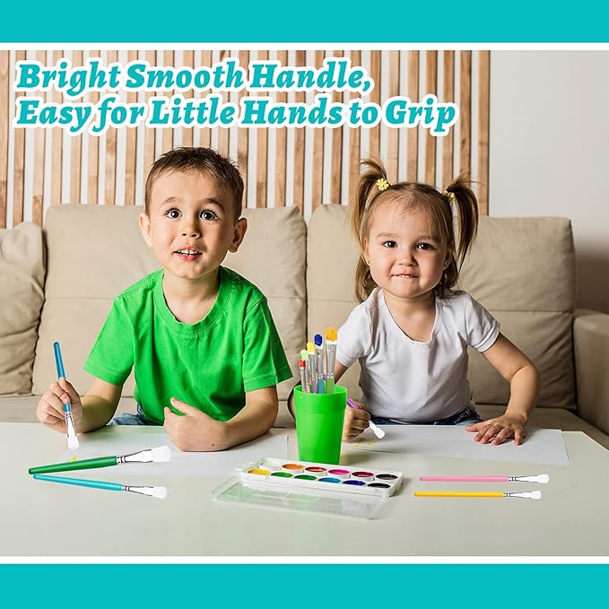 - Soft and Sturdy Bristles, Easy To Clean: No more worrying about cleaning toddler paint brushes anymore! All the kids paint brushes are made of high-quality materials, non-toxic and can be easily cleaned with soap and water.