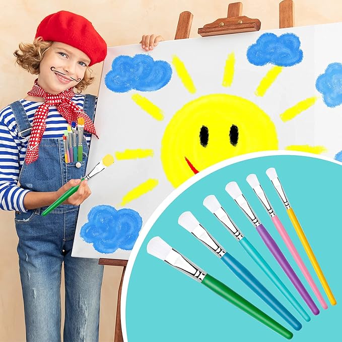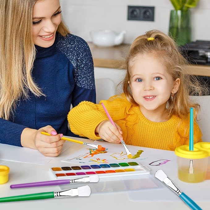 - Versatile Kids Paintbrush: Universal flat paint brushes set, which work with watercolor, gauche, and acrylic. Suitable for almost any type of paint, including acrylic, watercolor, oil, cel-vinyl, and gouache.Ideal for kids' school projects, birthday parties, painting party, art party paintings and more
