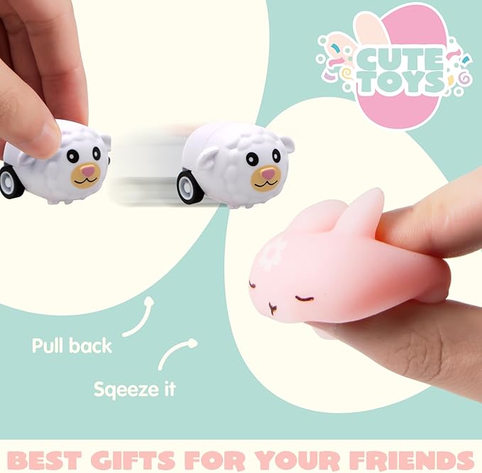 - SUPER VALUE PACK. Each egg is prefilled one toy and one easter sticker; Valuable and Durable 200 Pieces Toy Prefilled Premium Easter Eggs includes 200 toys with 27 Unique Types such as Mochi squishy toy, Easter Bracelets, Pull Back cars, Easter plastic big ring, Animal eraser, and Dinosaur, etc.