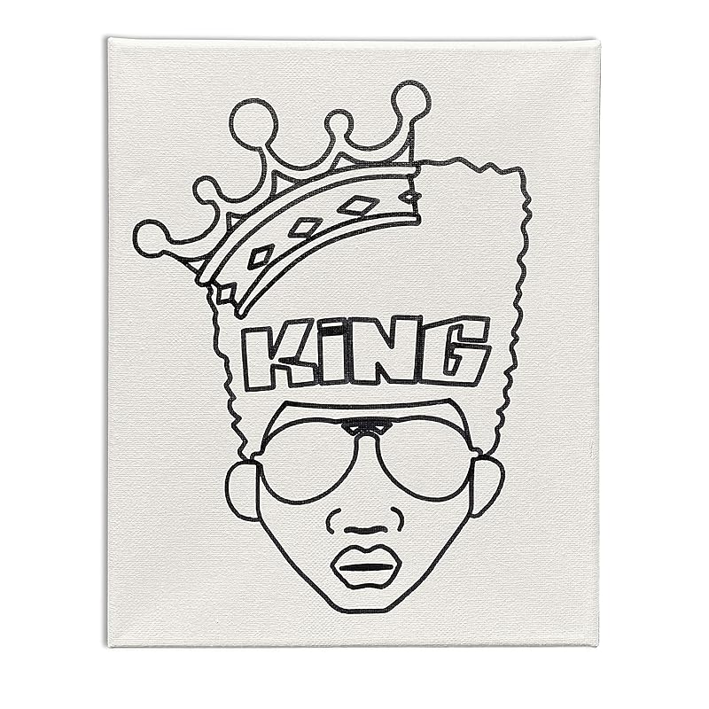Indigo Art Studio Pre Drawn Canvas Paint Kit for Adults Kids Couples | Stretched & Stenciled | Art Activity | Afro King #2 Retro | DIY Birthday Gift & Sip and Paint With Twist Party Favor | 8x10
