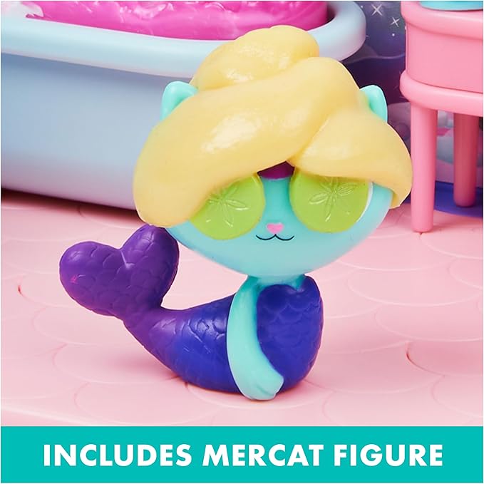 Gabby’s Dollhouse, Primp and Pamper Bathroom with Mercat Figure, 3 Accessories, 3 Furniture and 2 Deliveries, Kids Toys for Ages 3 and up