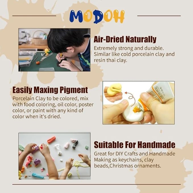 - 【Non-Toxic and Safe for All Ages】Create worry-free with MODOH Air Dry Flexible Porcelain clay. This non-toxic and safe clay allows both adults and children to enjoy the sculpting experience together.