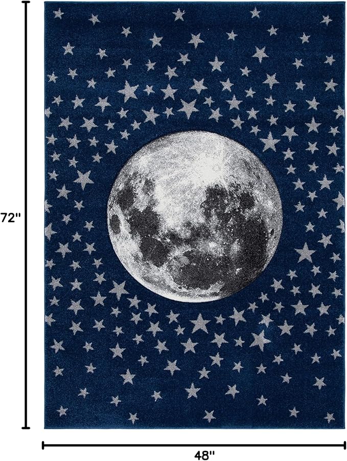 SAFAVIEH Carousel Kids Collection Accent Rug - 4' x 6', Navy & Grey, Non-Shedding & Easy Care, Ideal for High Traffic Areas for Boys & Girls in Playroom, Nursery, Bedroom (CRK135N)