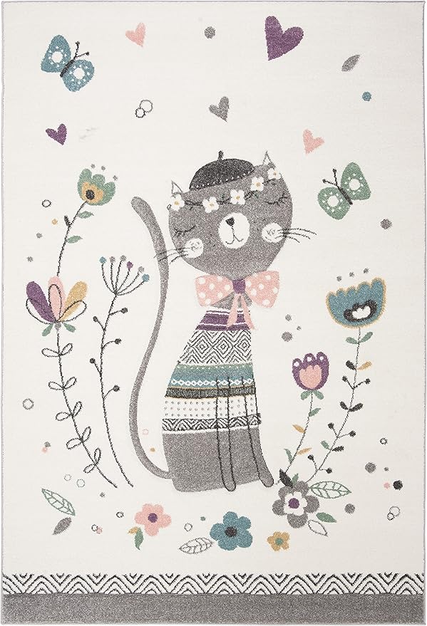 SAFAVIEH Carousel Kids Collection Area Rug - 8' x 10', Ivory & Pink, Cat Design, Non-Shedding & Easy Care, Ideal for High Traffic Areas for Boys & Girls in Playroom, Nursery, Bedroom (CRK187A)