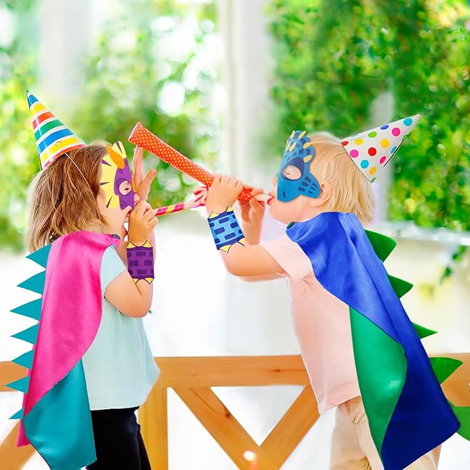 - Role-playing Time - Join Jack on thrilling adventures with our thoughtfully designed dragon costume, featuring a dragon cape measuring 27.5 inches by 27.5 inches, fits for boys and girls aged 3 to 10. Completed with dragon masks and two wristbands, kiddos can explore the depths of the jungle, construct territories alongside their friends, and foster imagination and teamwork.