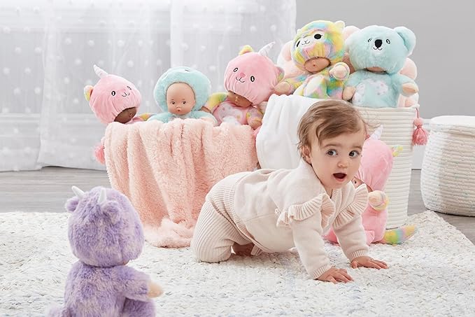 - Peekaboo: Enjoy sweet play time with this delightful baby doll dressed in a colorful llama onesie; The llama hood lifts up and down for a fun game of peekaboo; This twelve inch baby doll is perfect for little hands