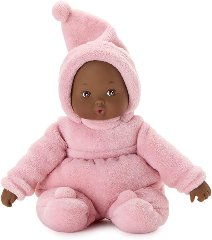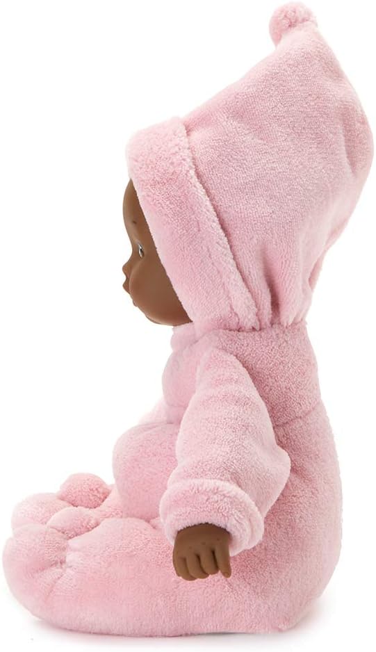 - Details: The pink fuzzy sleeper makes this doll perfect for snuggling; Soft fabric body and soft vinyl head are perfect for little hands to grasp and pull; Features dark skin tone and brown eyes