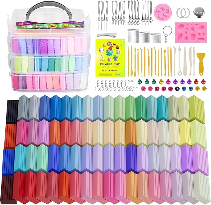 - Included Components : Polymer clay (72 colors), 19 modeling tools, 1 gem silicone, starfish silicone mold, hairpin, 2 ring holders, key ring, needles (48 x 9), bells (10 2), beads (8 mobile phone chains (16 3), earrings (6 shovel, instruction manual, three-layer storage box Polymer clay (72 colors), 19 modeling tools, 1 gem silicone, starfish silicone mold, hairpin, 2 ring holders, key ring, needles (48 x 9), bells… See more
