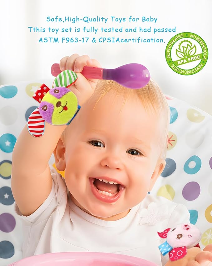 - PERFECT BABY GIFTS -- Give these Soft Baby Rattles Toys as the perfect infant toy gift.Suitable for Baby showers/Baby sprinkle/Sip & See gift/Newborn baby gift/Birthday gift/Registry gift/Easter/Halloween/Thanksgiving/Christmas/Holiday gift/Christening gift/'Just because'gift.