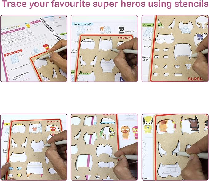- Exciting kids craft stencils - 6 Reusable Stencils template for kids and an activity booklet that enhances art & craft, Scrap Booking, Wall Painting, Home Decor, Sketching, DIY Albums, Card Making and Fabric Painting.