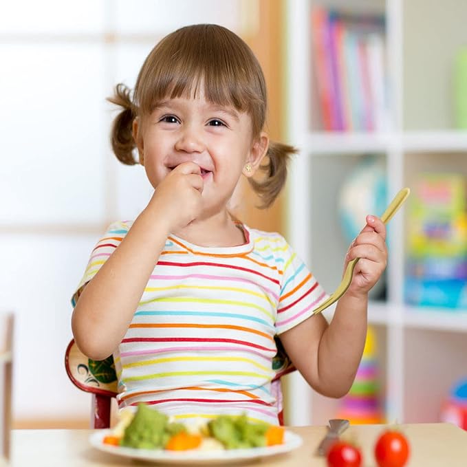 - Children's Full Dinnerware Set - Our kid’s dinnerware set is designed to provide parents with a complete dinner and snack set that meets all their children's needs. This 18-piece kids' plastic dinner set includes 6 toddler knives, 6 toddler forks, and 6 toddler spoons, making it ideal for children at various stages of development, from kids silverware set for the first stage (4 months) to baby utensils (6-12 months) to toddler spoons and forks (1-3 years old), and even for adults.