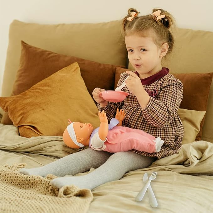 - Children's Full Dinnerware Set - Our kid’s dinnerware set is designed to provide parents with a complete dinner and snack set that meets all their children's needs. This 18-piece kids' plastic dinner set includes 6 toddler knives, 6 toddler forks, and 6 toddler spoons, making it ideal for children at various stages of development, from kids silverware set for the first stage (4 months) to baby utensils (6-12 months) to toddler spoons and forks (1-3 years old), and even for adults.