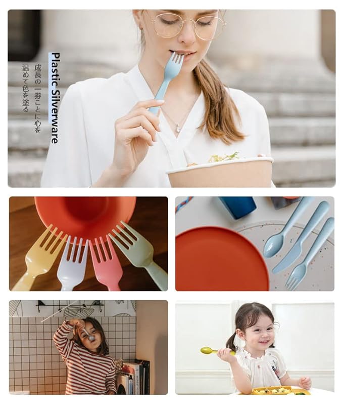 - Colorful & Reusable - Our plastic toddler spoons forks knife set come in six different bright colors for each dinnerware set. These utensils are durable and break-resistant, making them great for kids' lunch box, entrees, salads, soups, desserts, and cakes.