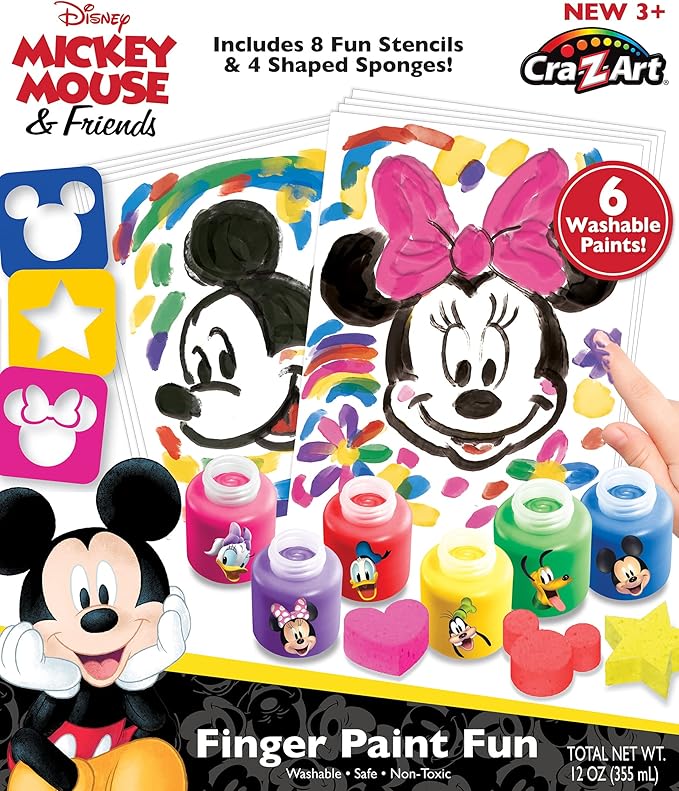 - DISNEY ARTS AND CRAFTS - Disney Minnie Mouse and Friends Finger Paint Fun comes with 6 jars of washable paint, fun shaped sponges, stencils, sheets of paper, and easy to follow instructions
