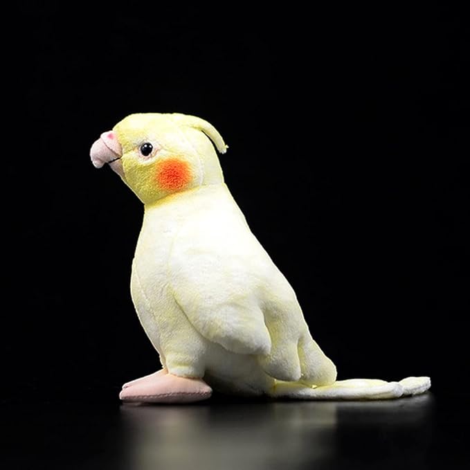 - REALISTIC PARROT PLUSH TOY: This is lifelike cockatiel toys , imitates real animals. The adorable face and squeezable body of our parrot plush are made from premium cloth and filler. its the yellow fur is smooth and soft, The light yellow head stripe is transparent, the long tail design, the overall shape design is realistic, and the face design is unique, very realistic.