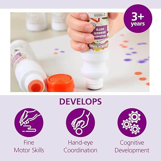 - DABBER DOT MARKERS: Dabber Dot Markers. Easy for young hands to push down and create dots on paper. Create patterns or drag across paper for coloring and drawing. Thick tips for repeated dabbing. Easy for young artists to hold, press and dot.