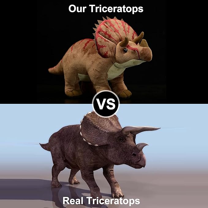 - REALISTIC APPEARANCE: Our super cute dinosaur looks brown all over, The design of the eyes is particularly vivid. Triceratops dinosaurs come from in ancient times. They have strong educational significance and can help children learn historical and geography and other knowledge from an early age.