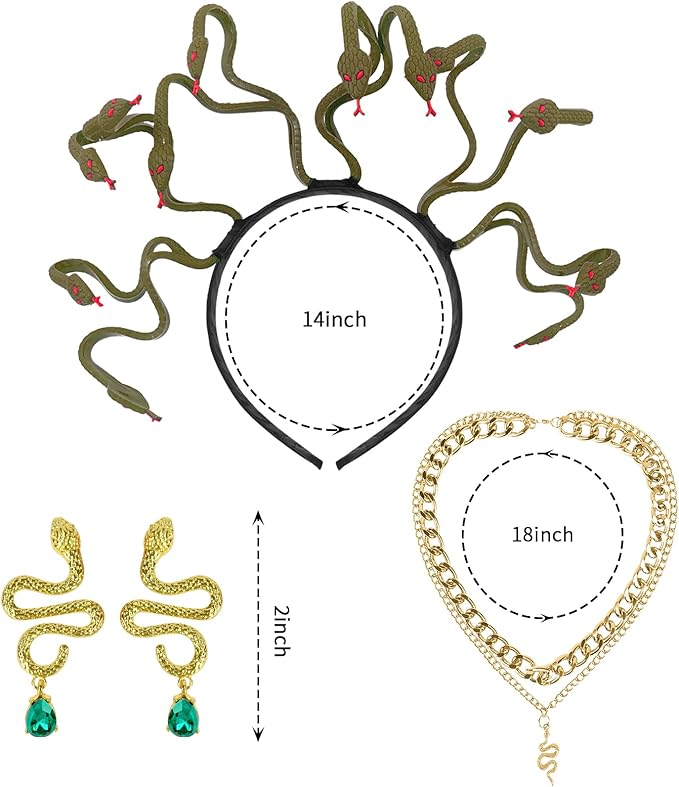 - Proper Size: our Medusas headband is approx. 23*23cm, vivid and attractive, fit for most adults. It wont tear or tighten your hair, a nice medusa halloween costume!