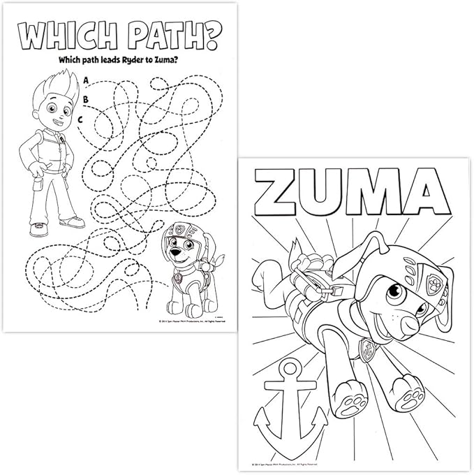 - This Paw Patrol coloring book set with Paw Patrol crayons will provide many hours of fun with games, puzzles, mazes and coloring activities. Includes 2 Paw Patrol coloring books -- each measure approximately 8 x 11 inches.