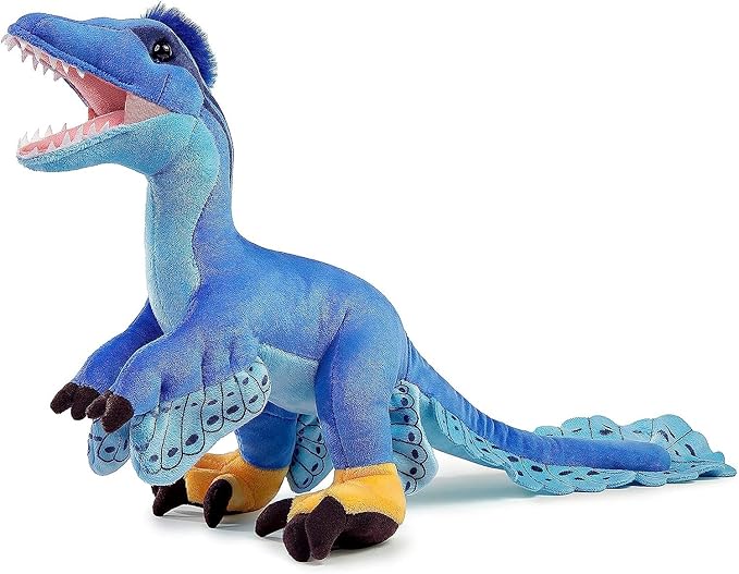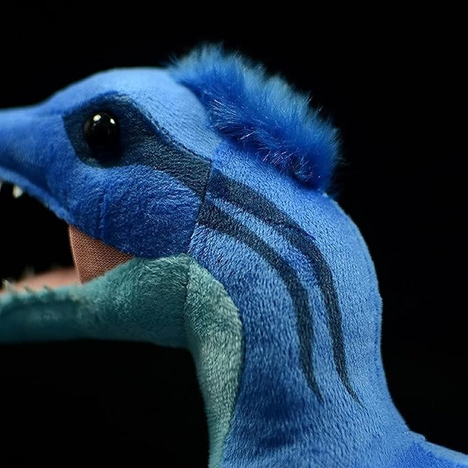 - REALISTIC DINOSAUR PLUSH TOY: This is a lifelike blue Long Microraptor Simulation Model toy, the details are realistic. The adorable face and squeezable body of our Microraptor plush are made from premium cloth and filler. its the light blue fur is smooth and soft, The blue back stripe is transparent, slender neck, lovely light blue wings, and the face design is unique, very realistic.