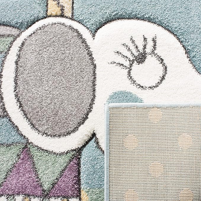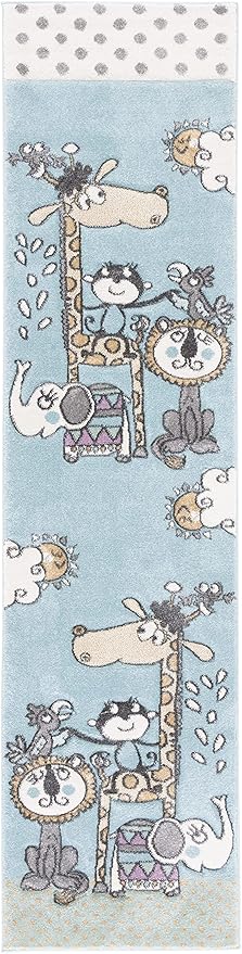 SAFAVIEH Carousel Kids Collection Runner Rug - 2' x 8', Ivory & Blue, Animal Design, Non-Shedding & Easy Care, Ideal for High Traffic Areas for Boys & Girls in Playroom, Nursery, Bedroom (CRK185A)