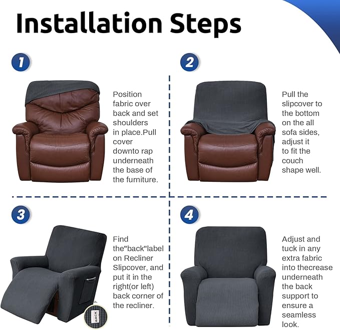 - Excellent design:Our recliner cover is a piece of installation; in the aspect of installation is more inclined to simple; attached to the whole sofa; Please follow our installation steps about 5 minutes can be installed successfully
