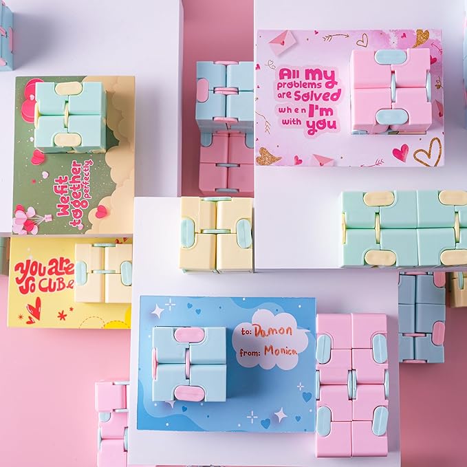 - IDEAL GIFT. Our Valentines Day Gift Cards with fidget toys Party Favors Set provides fun and entertainment for your kids! It’s a great alternative for non-food valentines for class. It’s a great gift option for kids’ school classroom prizes, gift exchange, love notes, s, Valentine fidget infinity Magic toys for kids, and more!