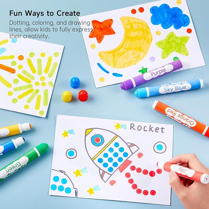 - NON-TOXIC & ACID-FREE: These dot marker pens are completely safe for kids. We use non-toxic, acid-free ink that is gentle on the skin. The dot markers' materials conform to ASTM-D4236 standards