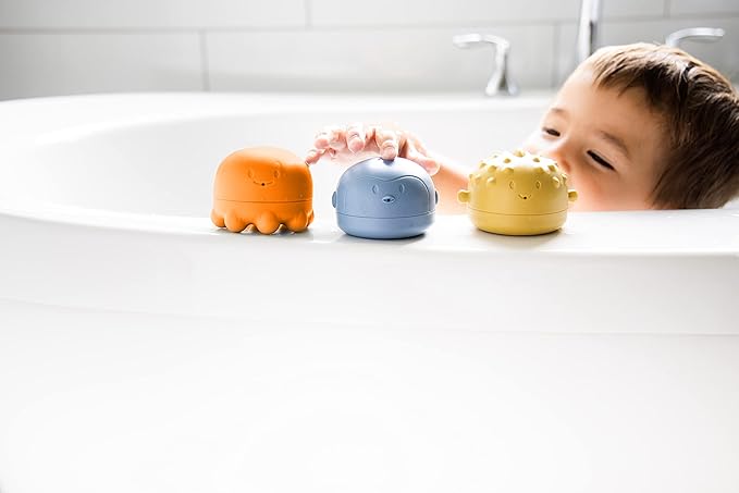 Ubbi Muted Color Bath Squeeze Toys, Baby Bath Accessory, Water Toys for Toddler Bath Time Play