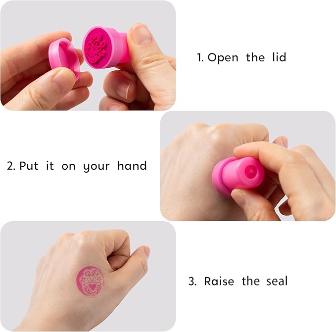 - UNIQUE DESIGN. Self-inking stamps for children are made from 100% safe color pigments and non-toxic materials that meet the US toy standards. There is no need to fill ink as each plastic stamp comes pre-inked. The safety test was successful. This self-inking stamp set creates joy and excitement for kids.