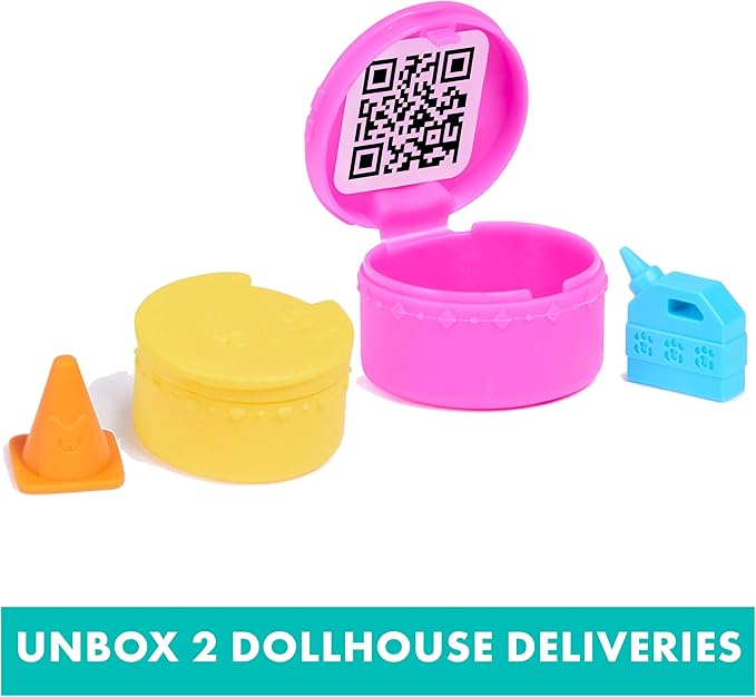 • 2 DOLLHOUSE DELIVERIES, 2 SURPRISE ACCESSORIES: Discover 2 Accessories – a ramp bed & stoplight, then unbox 2 Dollhouse Deliveries to reveal a traffic cone & gas can, for your doll house adventures