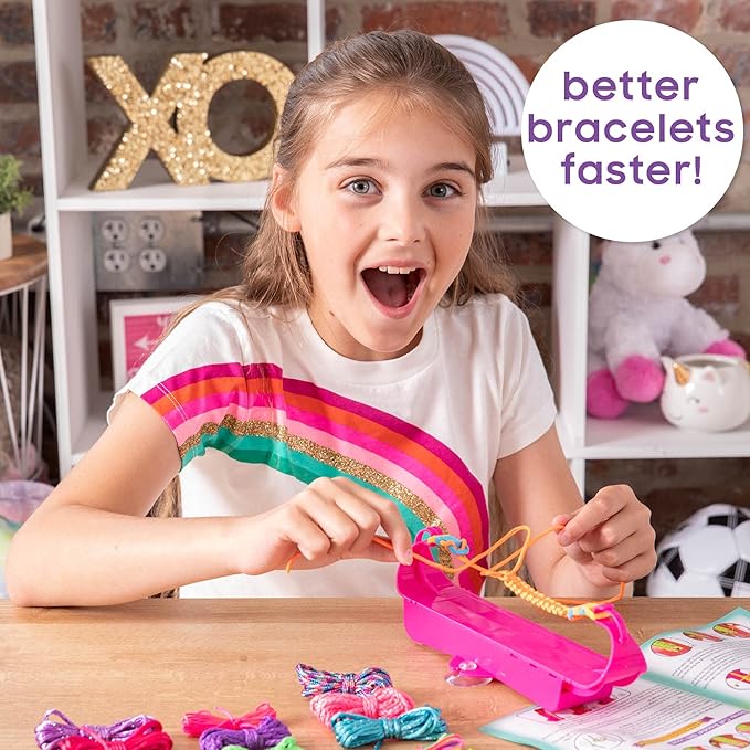 - BRACELET-MAKING MADE EASY: This all-in-one bracelet-making kit comes with a tool that makes it easier than ever to create bracelets — stick the suction cups onto any flat surface and use the hook to knot, braid, and bead with ease!