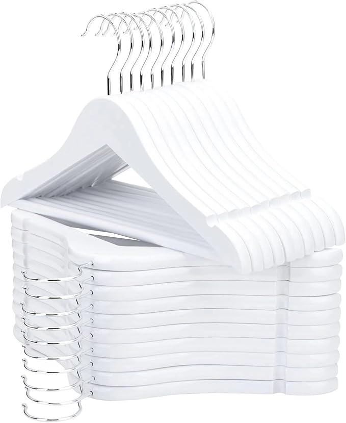 FairyHaus Kids Hangers 20 Pack 12.8 Inch, Solid Wooden Baby Hangers for Closet, Anti-Rust 360° Swivel Hook, Notches & Smooth Finish, Durable and Strong Childrens Hangers for Clothes White