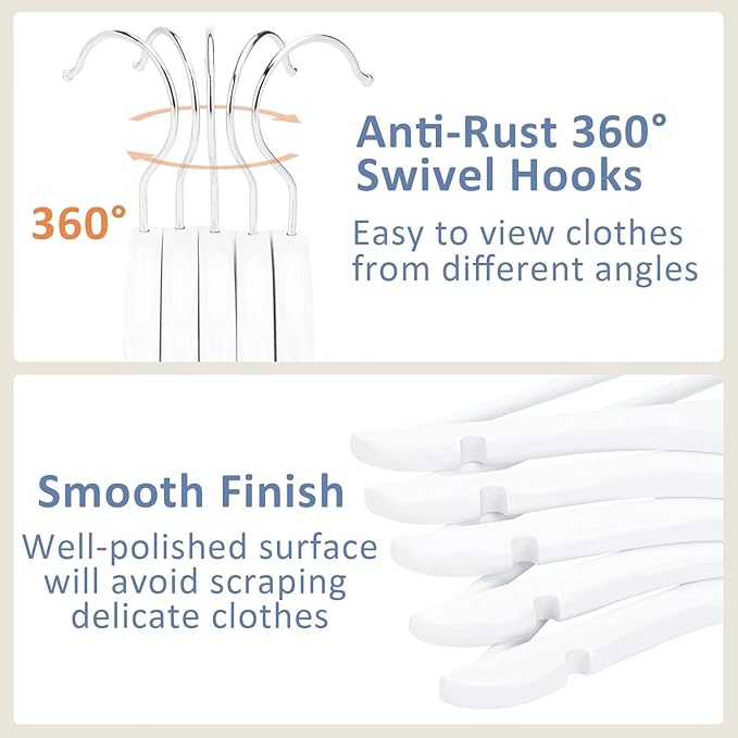 - Child-friendly Design & Smooth Surface: Well-polishing childrens hangers with smooth finish will protect little hands. No rough edge and burr on the white baby clothes hangers' surface to avoid scraping delicate clothes.