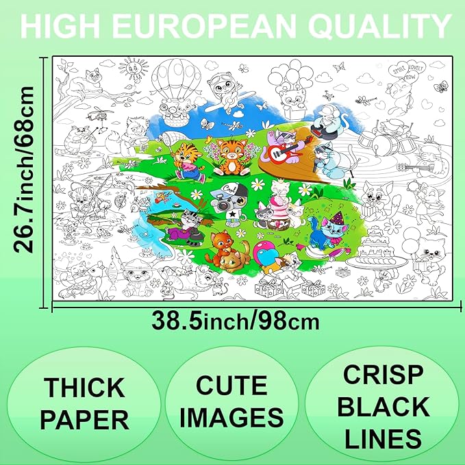 - Wall Size - our giant coloring poster size 38.5 x 26.7 inches has thick wall sized paper. Your child deserves oversized coloring poster